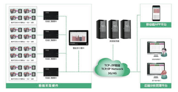 采用先進的分布式一拖一組網(wǎng)模式:每個單體電池安裝一個控 模塊,每個監(jiān)控模塊通過RS485網(wǎng)線串接起來。監(jiān)控數(shù)據(jù)匯集 到組端收斂模塊,再由收斂模塊將數(shù)據(jù)傳輸?shù)斤@示模塊顯示。 這種方式安裝簡單方便,同時售后維護也極其便捷。